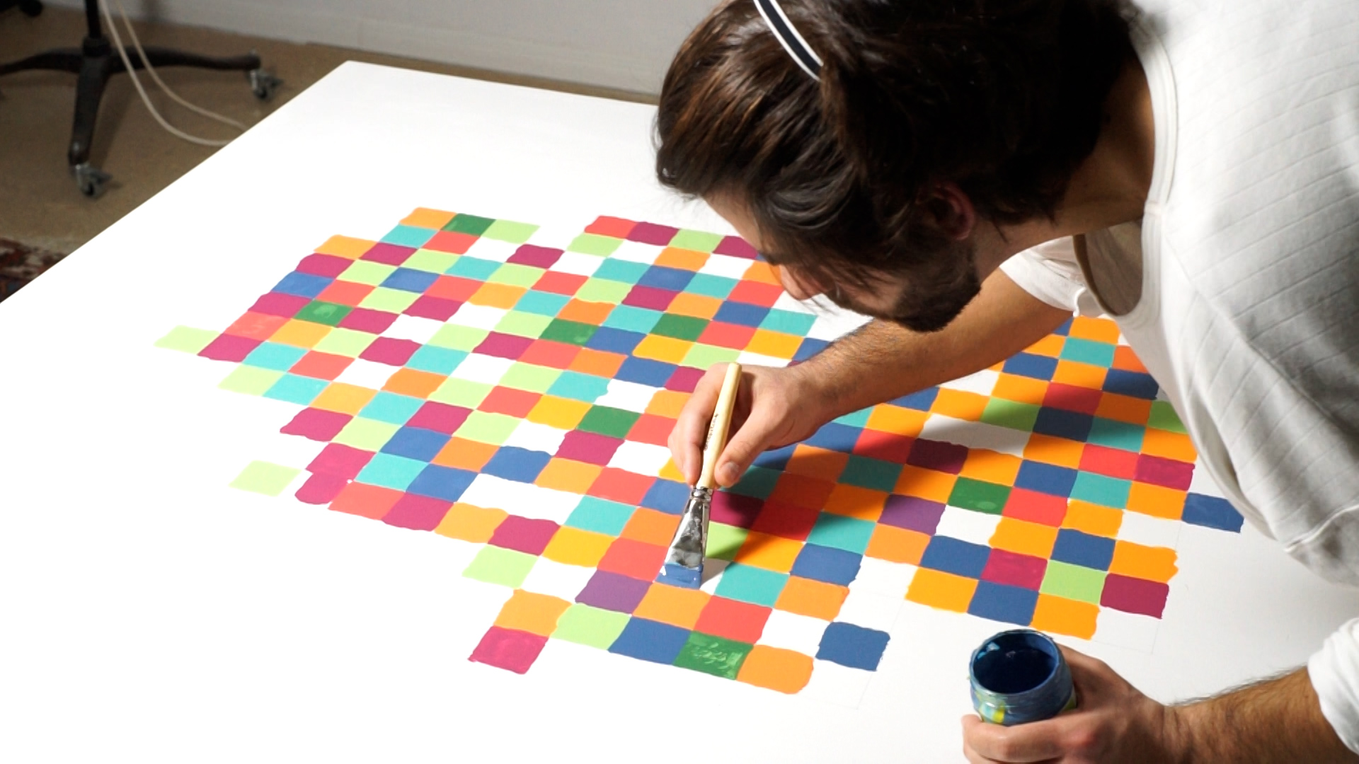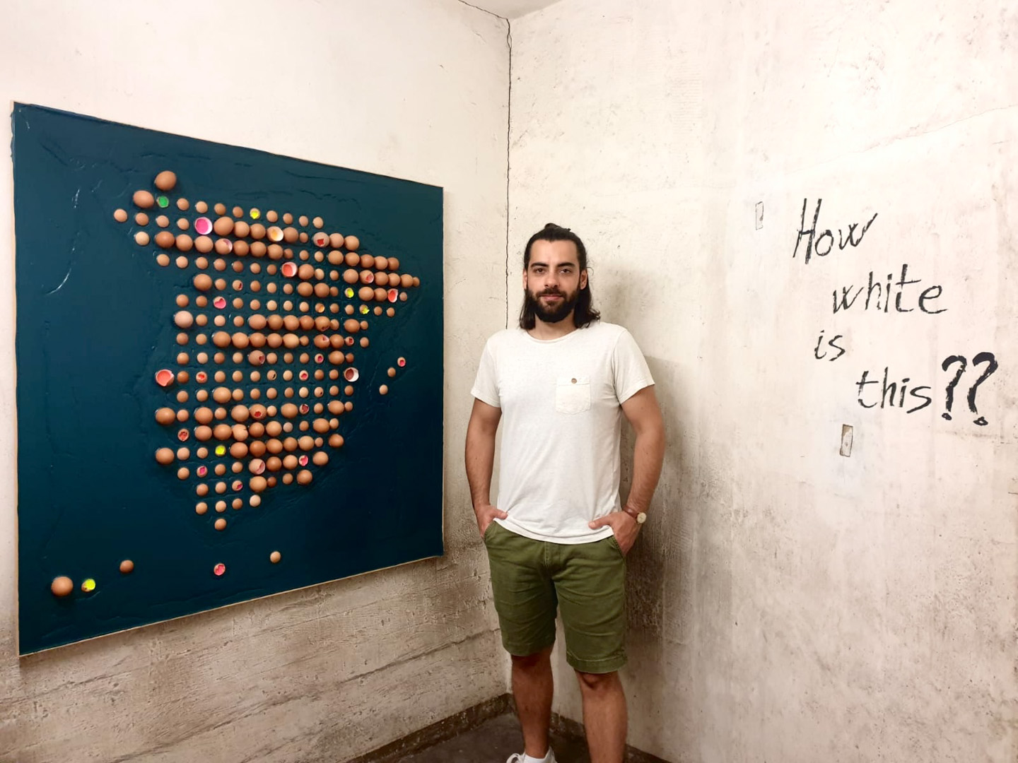 The work “How White is this?” addresses the ambiguity and subjectivity of ethnic definitions based on nationality.