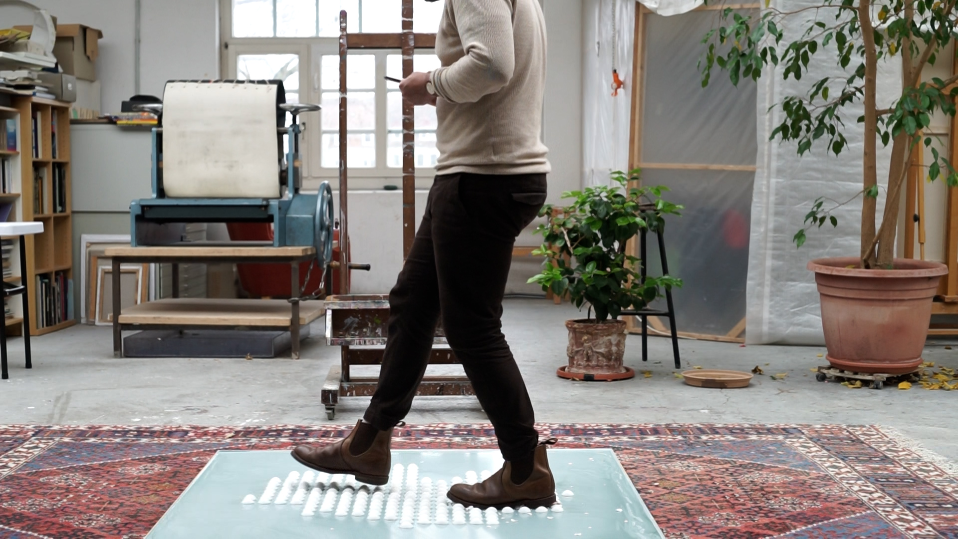 The artist grew up in Spain during the 1990s, a time when terrorist attacks were frequent across the country and special caution was required in public spaces (particularly for people in politics, civil servants, and their families). These experiences serve as the starting point for this work.