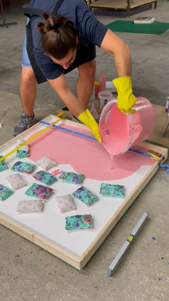 100 x 100 cm, frame made from recycled stretcher bars